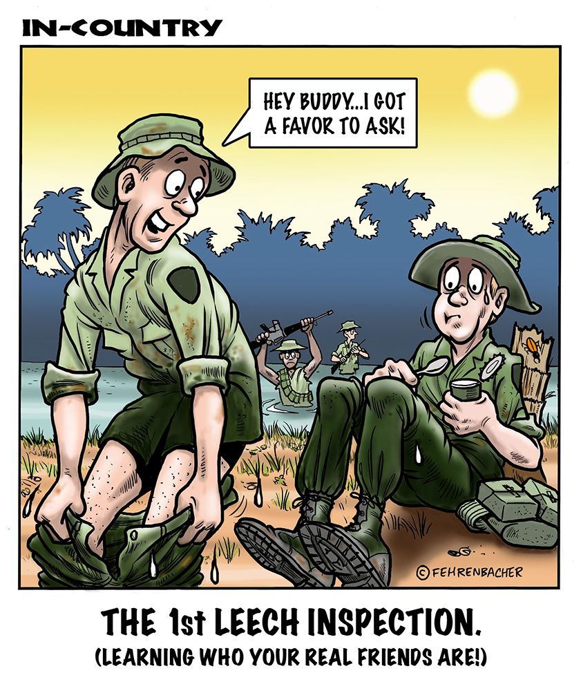 Phil enlisted in the Army in 1965 where he served for years in Vietnam. He became a graphic designer and has worked for the state of Oregon for 26 years. He retired in 2003 and started the Cartoon "In-Country". The cartoons reflect his experiences during his tour of duty in South Vietnam.