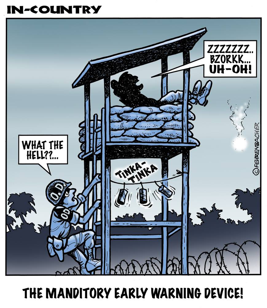 Phil enlisted in the Army in 1965 where he served for years in Vietnam. He became a graphic designer and has worked for the state of Oregon for 26 years. He retired in 2003 and started the Cartoon "In-Country". The cartoons reflect his experiences during his tour of duty in South Vietnam.